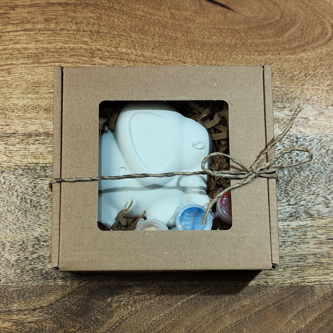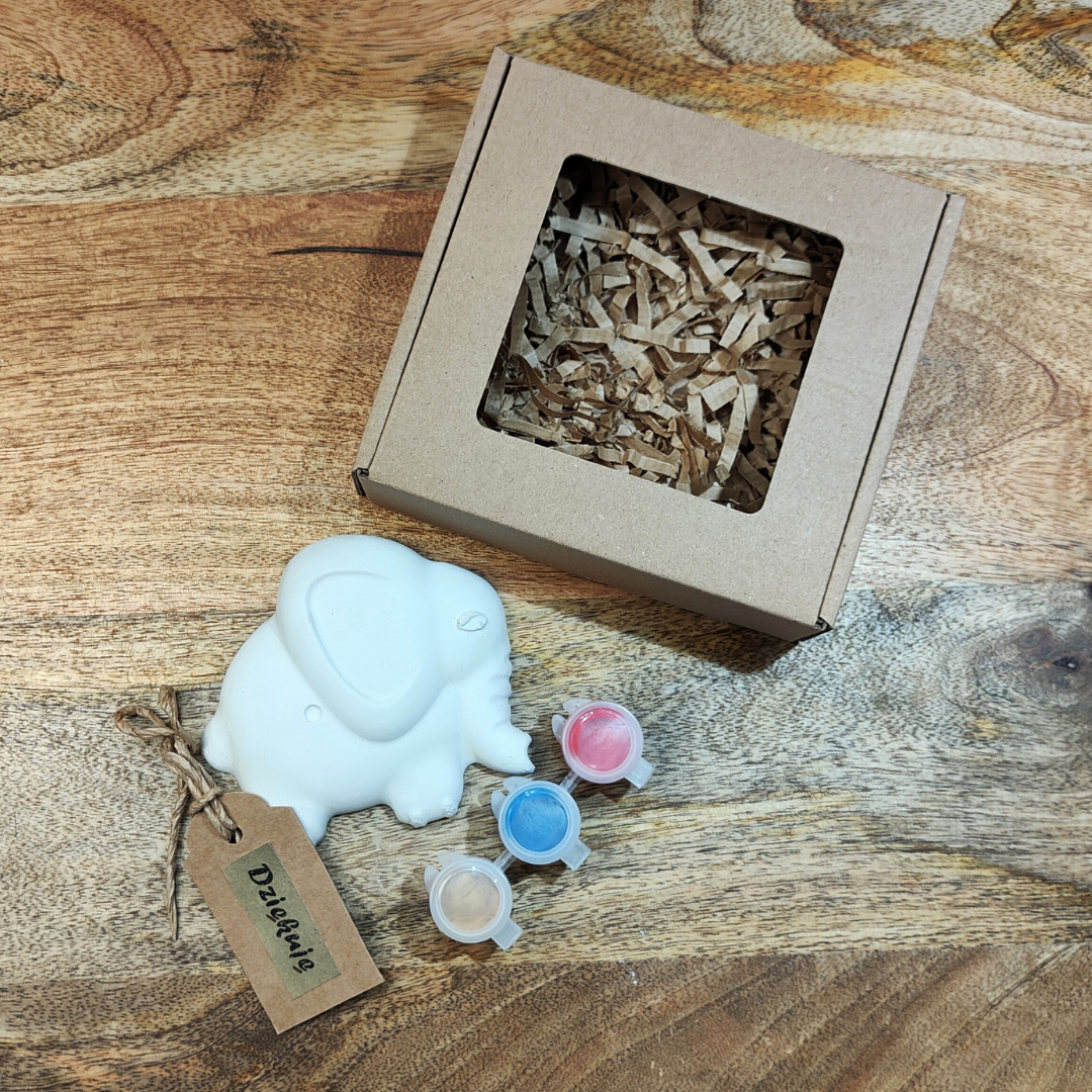 Słoń na szczęście w pudełku z okienkiem + 3szt. farb