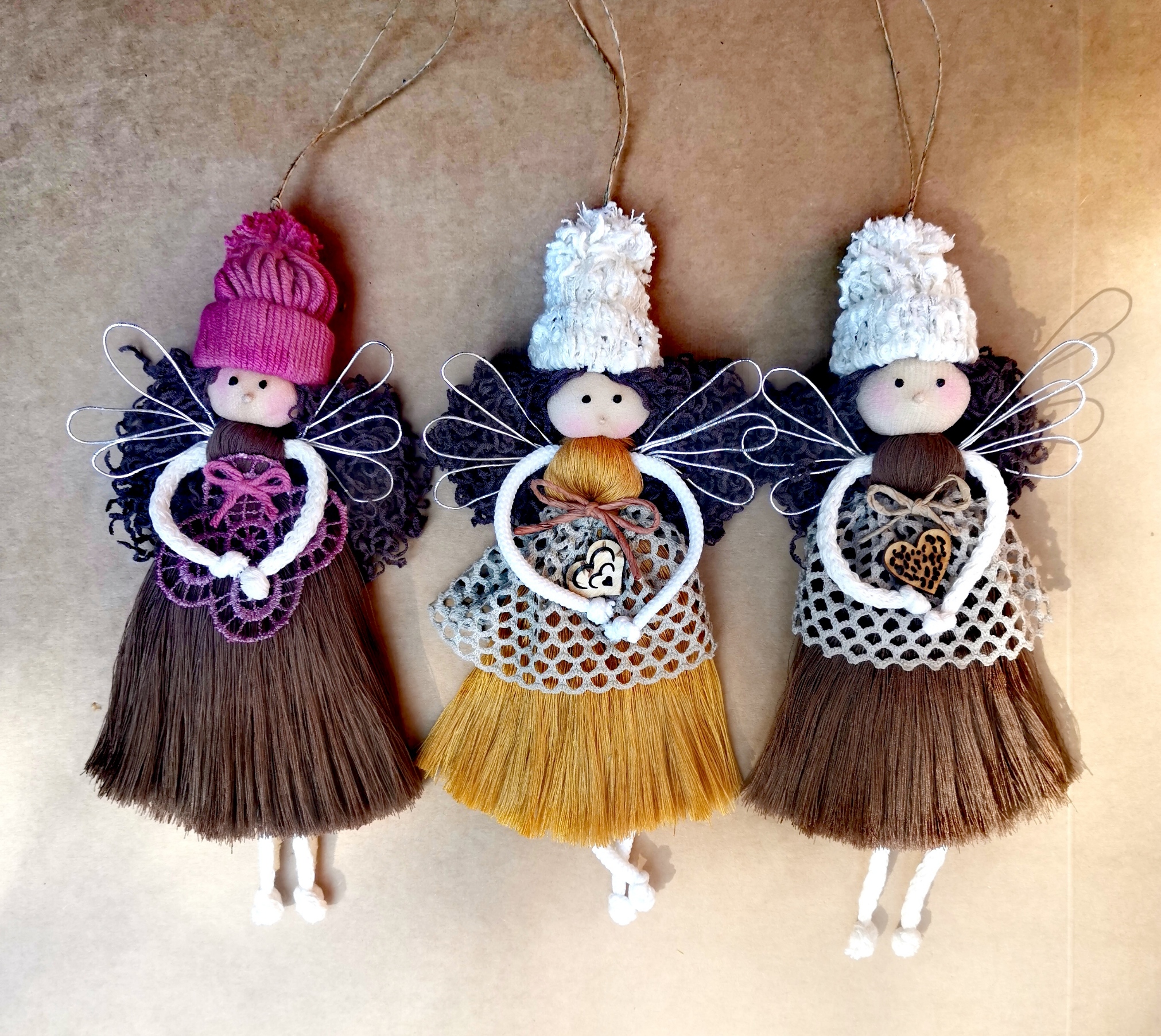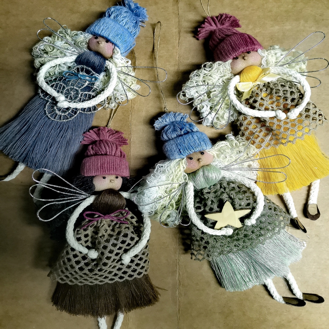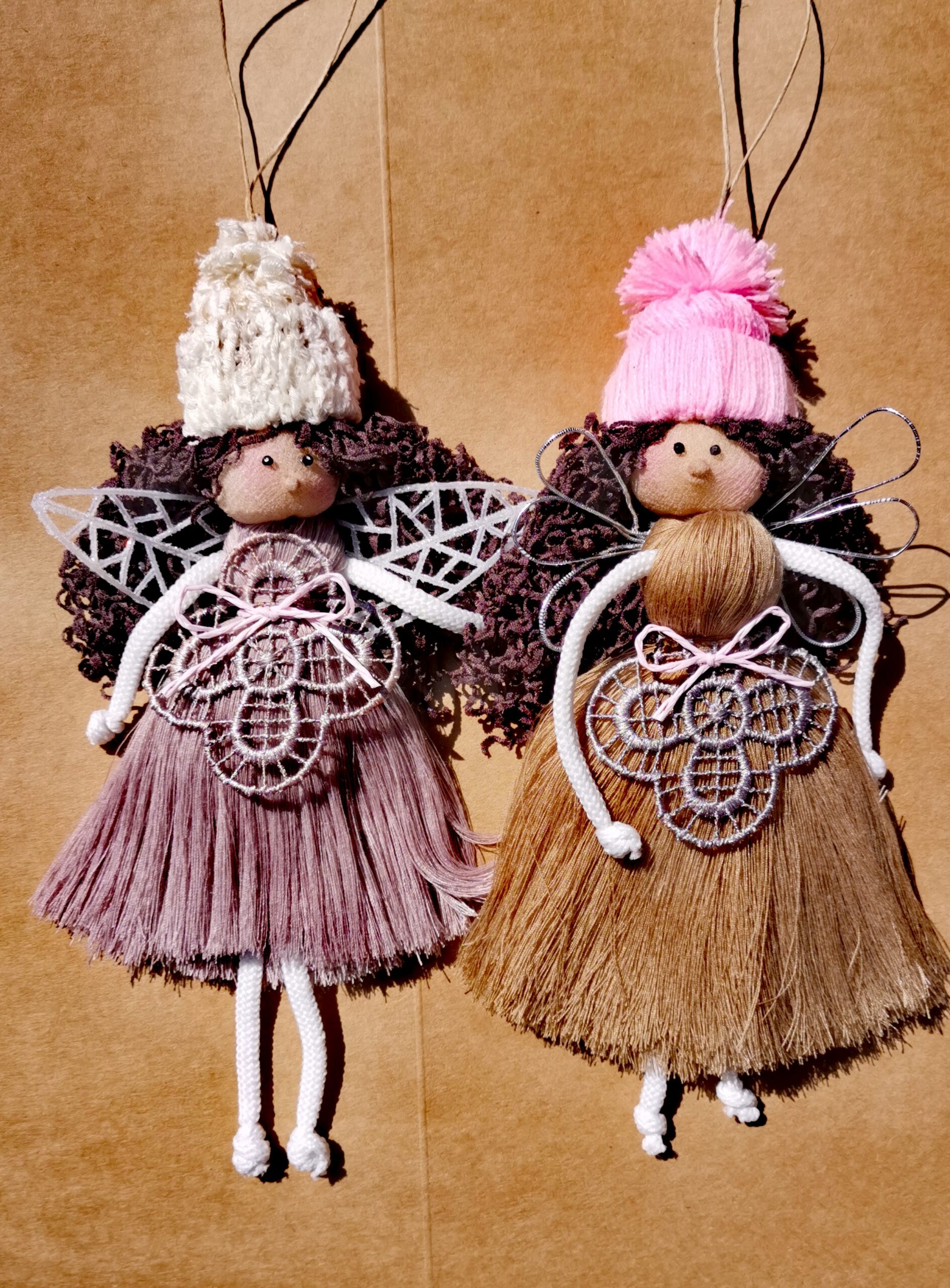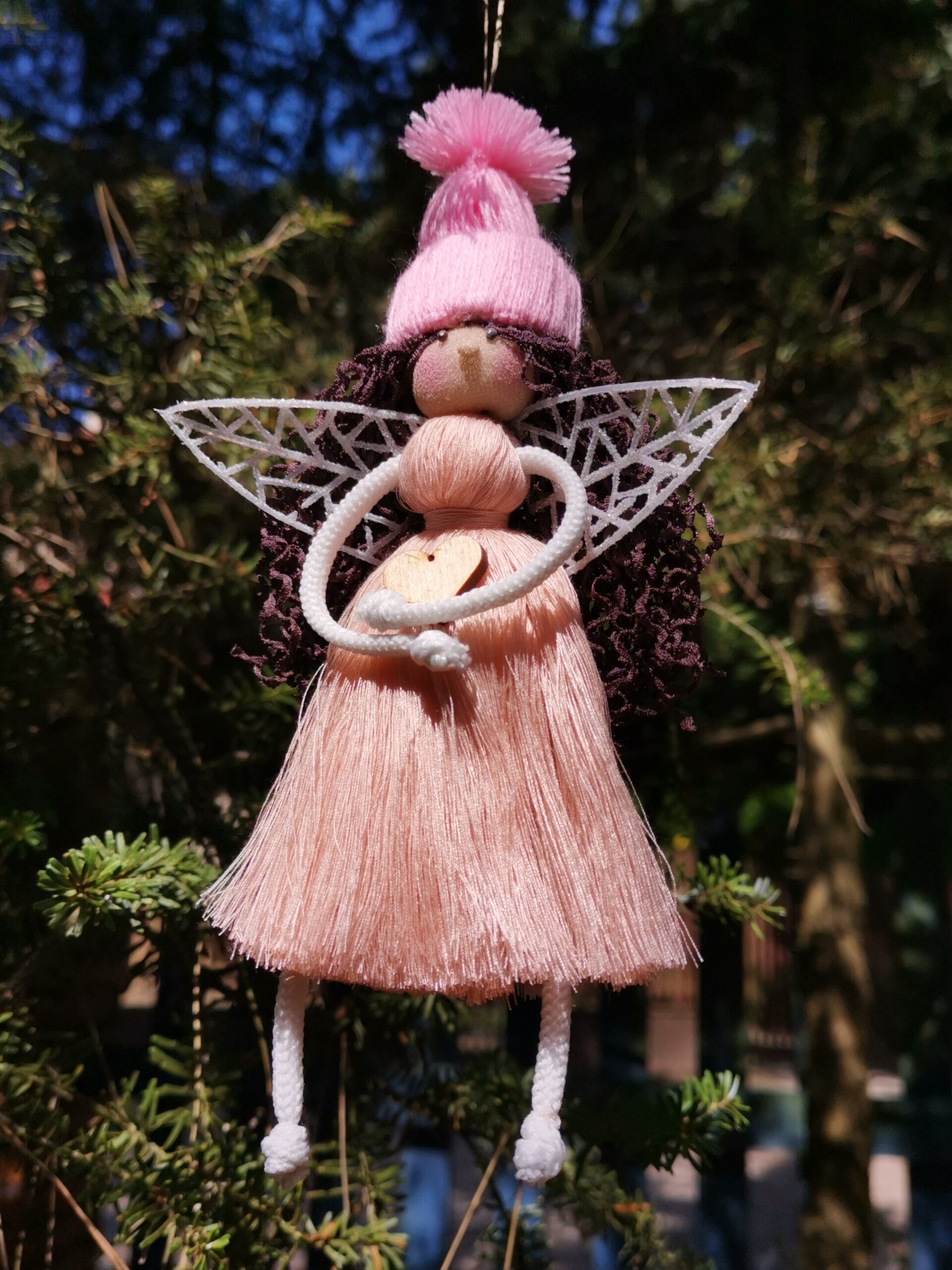 Aniołek wykonany w 100% ręcznie ze sznurków, włóczek, nitek.